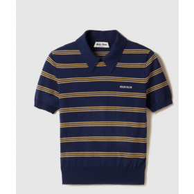• [MIUMIU-미우미우] 스트라이프 캐시미어 및 실크 폴로 스웨터 MMLA18