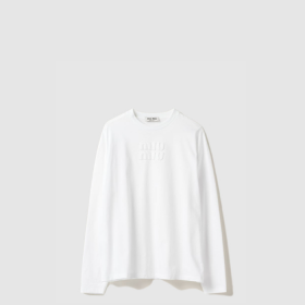• [MIUMIU-미우미우] 자수 로고 장식 코튼 티셔츠 MJL862